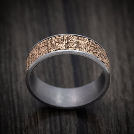 Tantalum Men's Ring with 14K Gold Bamboo Texture Inlay