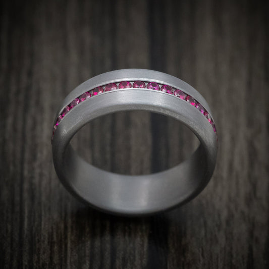 Tantalum Band With Satin Finish And Rubies Custom Made Men's Ring