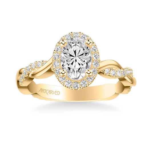 Rina Contemporary Oval Halo Twist Diamond Engagement Ring