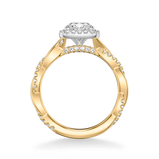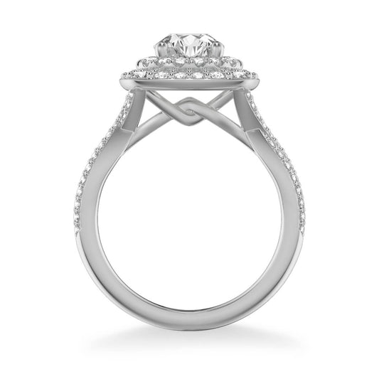 Eileen Contemporary Cushion Halo Round Center Twist Diamond Engagement Ring