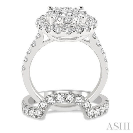 2 5/8 Ctw Round Shape Diamond Lovebright Wedding Set with 2 Ctw Engagement Ring and 5/8 Ctw Wedding Band in 14K White Gold