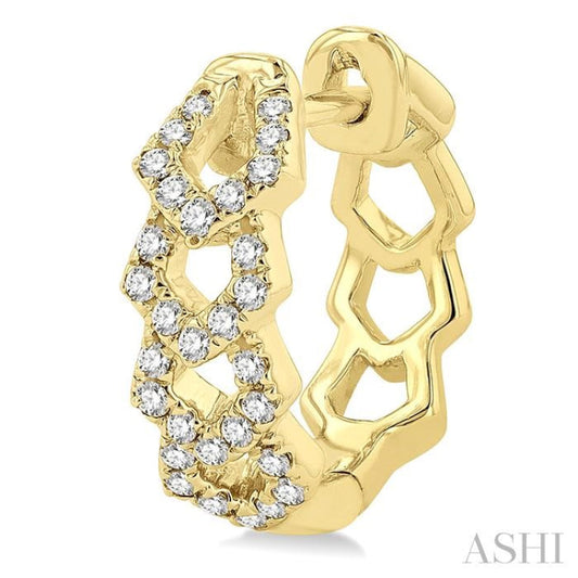 1/4 ctw Petite Geometric Link Round Cut Diamond Fashion Huggies in 10K Yellow Gold