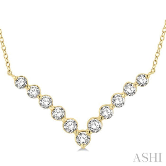 1 Ctw Chevron Round Cut Diamond Necklace in 14K Yellow Gold