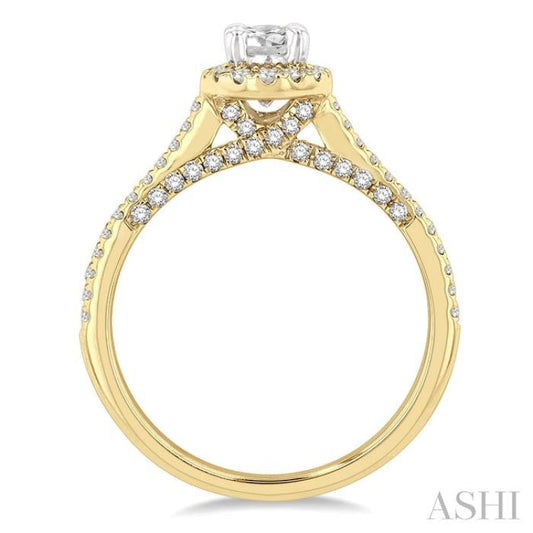 3/8 ctw Oval Shape Round Cut Diamond Semi-Mount Engagement Ring in 14K Yellow and White Gold