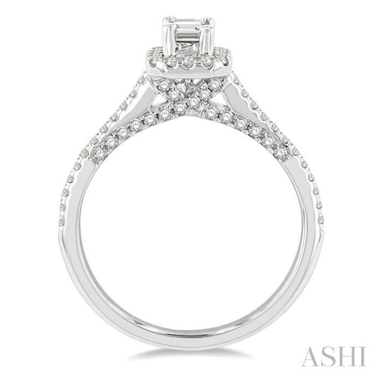 3/8 ctw Octagonal Shape Round Cut Diamond Semi-Mount Engagement Ring in 14K White Gold