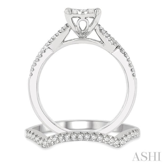 3/4 ctw Lovebright Round Cut Diamond Wedding Set With 5/8 ctw Oval Shape Engagement Ring and 1/8 ctw Curved Wedding Band in 14K White Gold