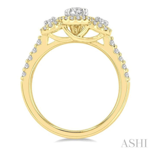 5/8 Ctw Oval Shape Past, Present & Future Round Cut Diamond Semi Mount Engagement Ring in 14K Yellow and White Gold