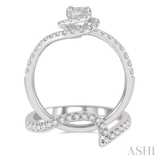 3/4 ctw Lovebright Round Cut Diamond Wedding Set With 1/2 ctw Circular Bypass Engagement Ring and 1/5 ctw Scoop Curve Wedding Band in 14K White Gold