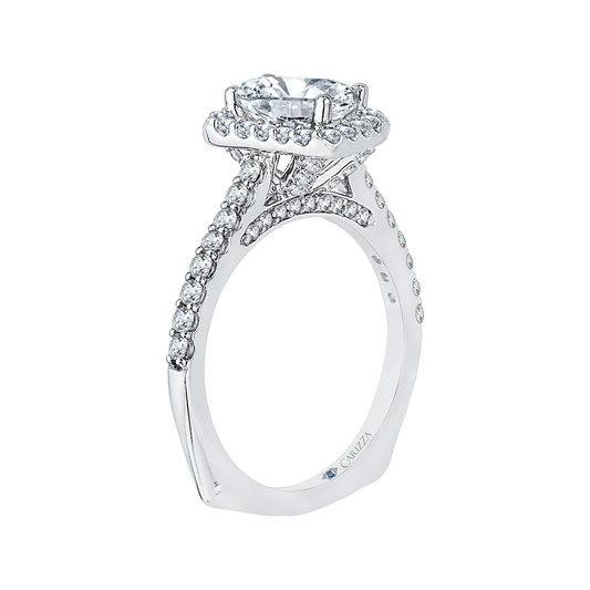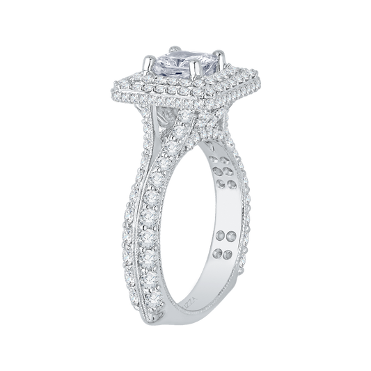 Cushion Cut Split Shank Diamond Double Halo Engagement Ring in 14K White Gold (Semi-Mount)