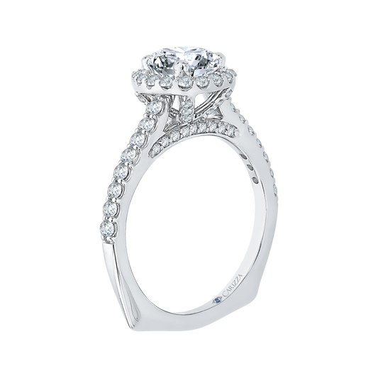 Euro Shank Diamond Halo Engagement Ring in 14K White Gold (Semi-Mount)
