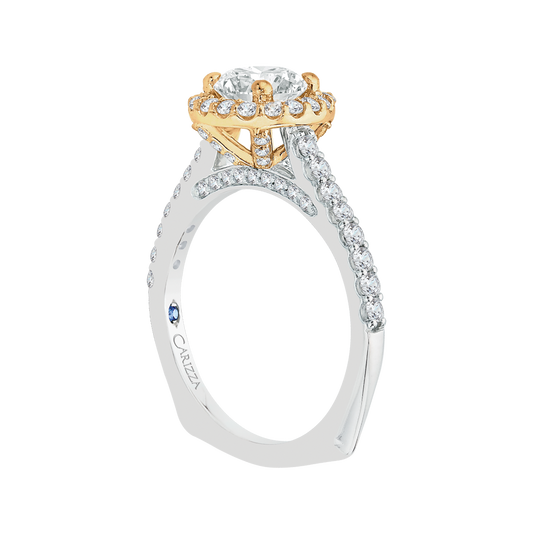 Cushion Cut Diamond Halo Engagement Ring in 14K Two-Tone Gold (Semi-Mount)