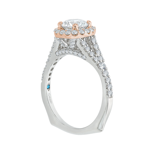 Split Shank Diamond Halo Engagement Ring in 14K Two-Tone Gold (Semi-Mount)