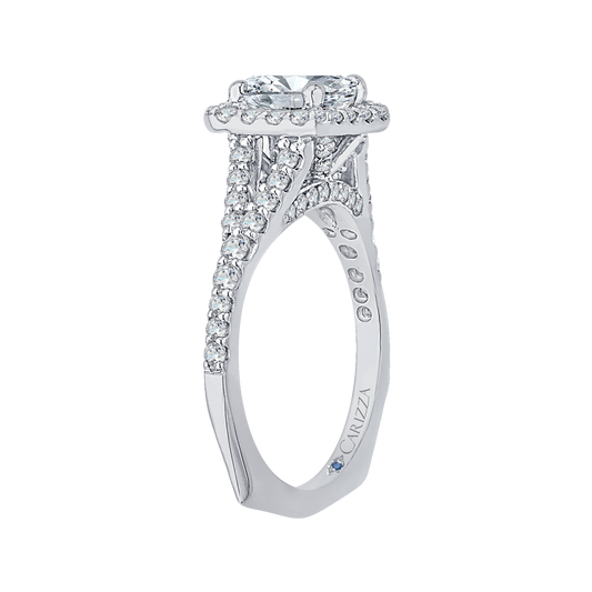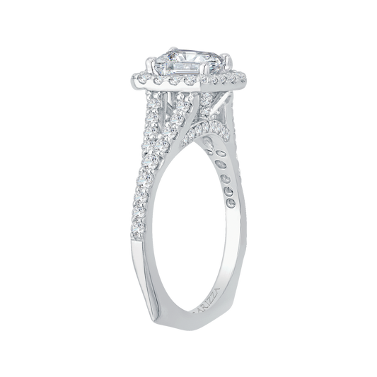 Split Shank Princess Cut Diamond Halo Engagement Ring in 14K White Gold (Semi-Mount)