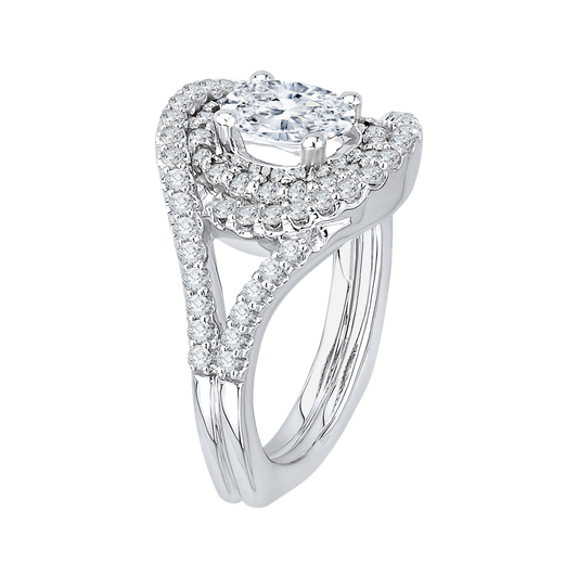 Split Shank Oval Shape Diamond Halo Engagement Ring in 14K White Gold (Semi-Mount)