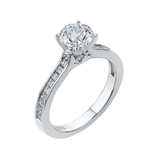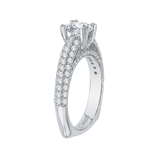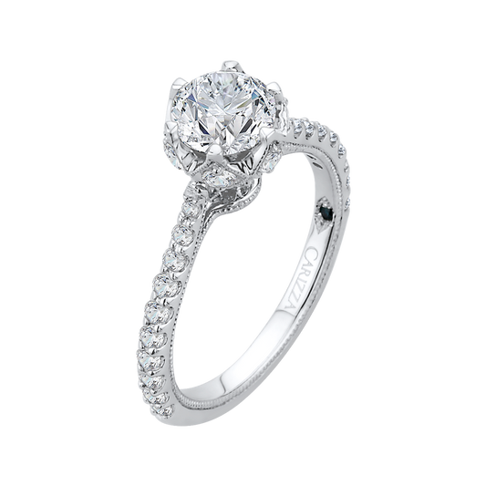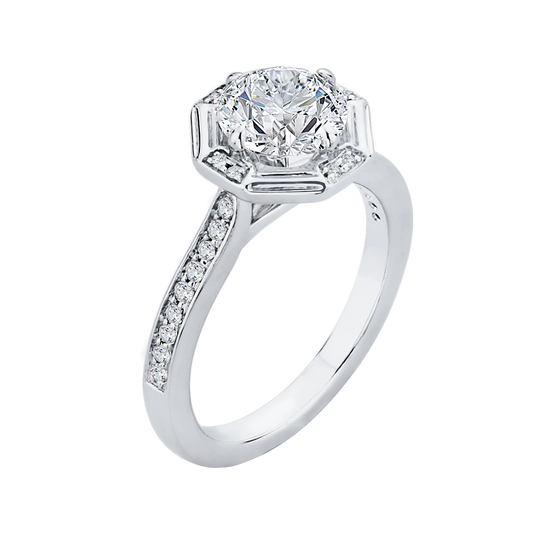 Cut Round Diamond Cathedral Style Engagement Ring in 14K White Gold (Semi-Mount)