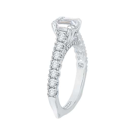 Emerald Cut Euro Shank Diamond Cathedral Style Engagement Ring in 14K White Gold (Semi-Mount)