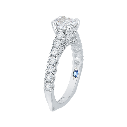 Cushion Cut Euro Shank Diamond Cathedral Style Engagement Ring in 14K White Gold (Semi-Mount)
