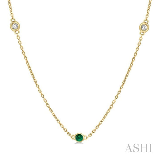 1/6 ctw Round Cut Diamond and 1.75MM Emerald Precious Station Necklace in 14K Yellow Gold