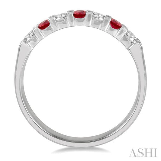 1/4 ctw Round Cut Diamond and 2.6MM Ruby Precious Wedding Band in 14K White Gold