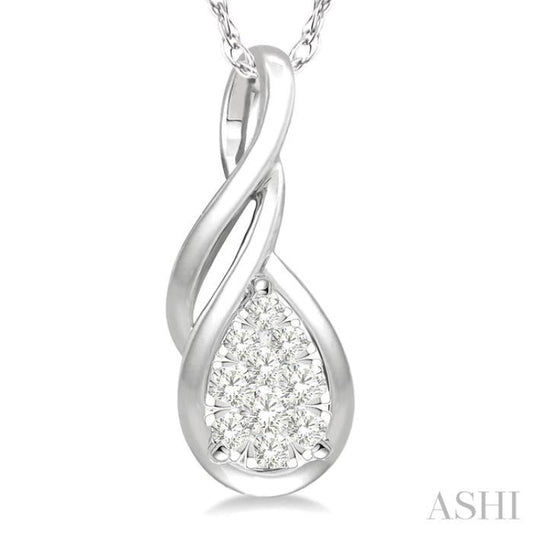 1/8 Ctw Pear Shape Lovebright Entwined Wire Round Cut Diamond Pendant With Link Chain in 14K White Gold