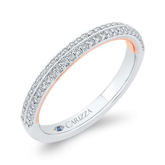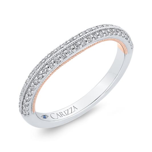 Round Diamond Half-Eternity Wedding Band in 14K Two Tone Gold