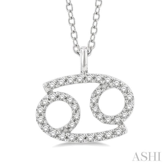 1/8 Ctw Cancer Round Cut Diamond Zodiac Pendant With Chain in 14K White Gold