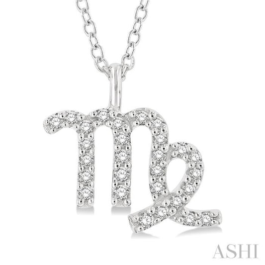 1/8 Ctw Virgo Round Cut Diamond Zodiac Pendant With Chain in 14K White Gold
