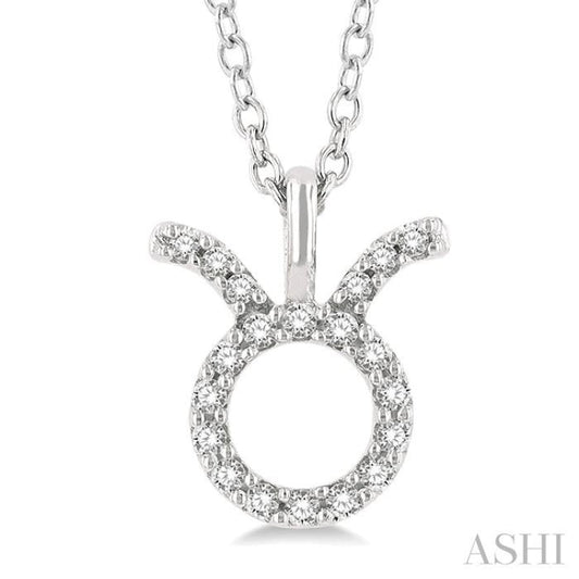 1/10 Ctw Taurus Round Cut Diamond Zodiac Pendant With Chain in 14K White Gold
