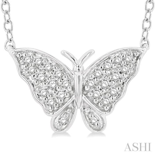 1/10 Ctw Butterfly Petite Round Cut Diamond Fashion Pendant With Chain in 10K White Gold