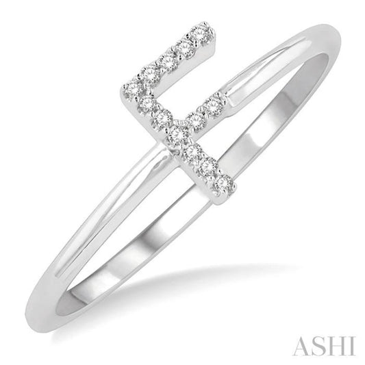 1/20 Ctw Initial 'F' Round Cut Diamond Fashion Ring in 10K White Gold