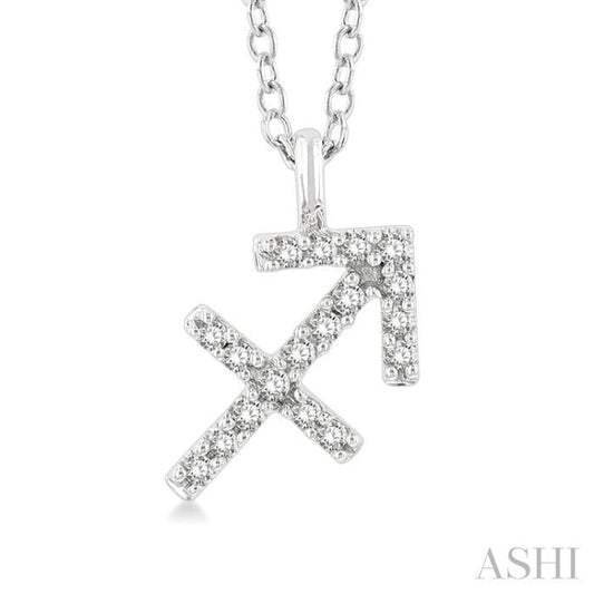 1/10 Ctw Sagittarius Round Cut Diamond Zodiac Pendant With Chain in 14K White Gold