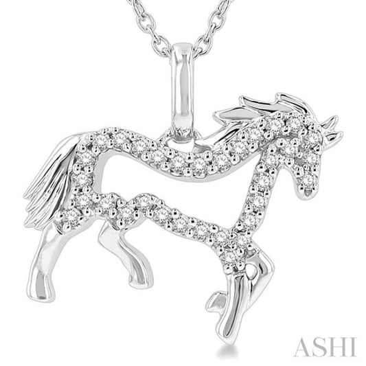 1/8 Ctw Horse Symbol Petite Round Cut Diamond Fashion Pendant With Chain in 10K White Gold
