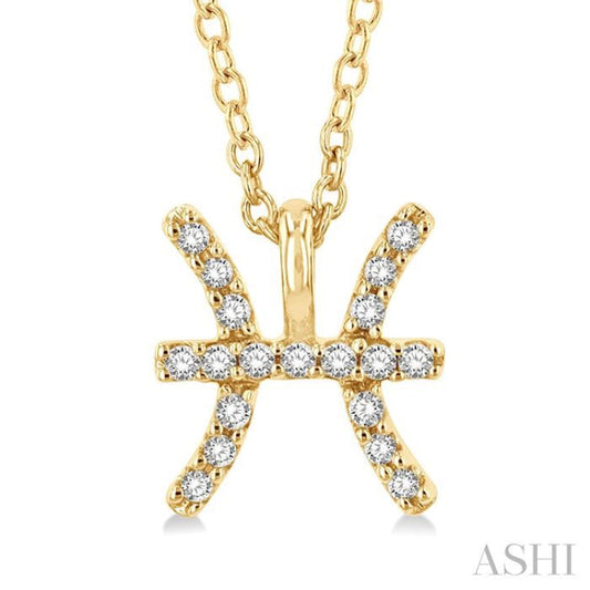 1/20 Ctw Pisces Round Cut Diamond Zodiac Pendant With Chain in 10K Yellow Gold