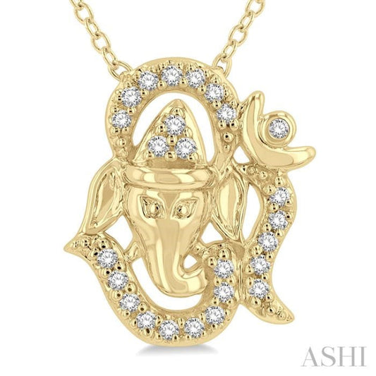 1/10 Ctw Ganesha in OM Petite Round Cut Diamond Fashion Pendant With Chain in 10K Yellow Gold