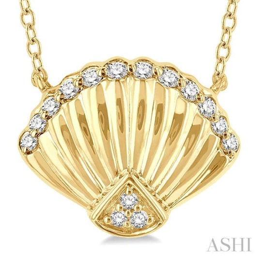 1/10 Ctw Nautical Seashell Petite Round Cut Diamond Fashion Pendant With Chain in 10K Yellow Gold