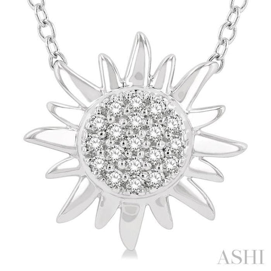 1/10 Ctw Sun Petite Round Cut Diamond Fashion Pendant With Chain in 10K White Gold