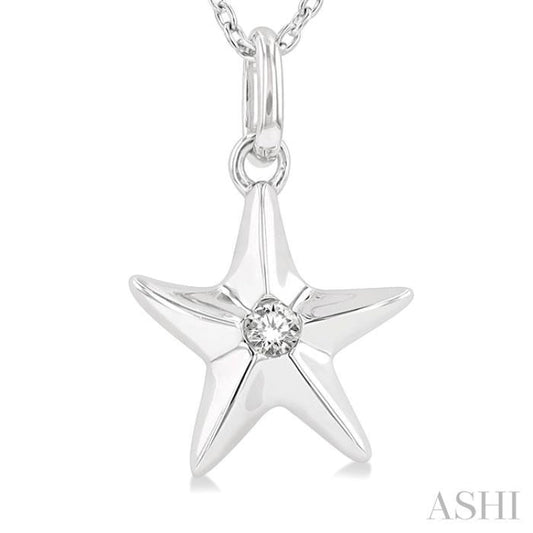 1/50 Ctw Starfish Petite Round Cut Diamond Fashion Pendant With Chain in 10K White Gold