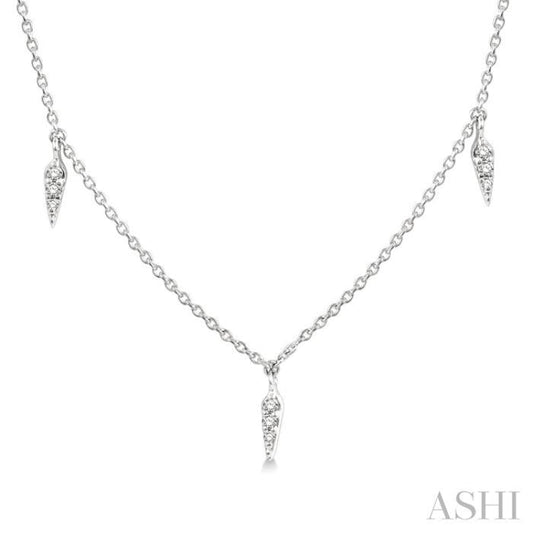 1/10 Ctw Spearhead Mount Round Cut Diamond Station Necklace in 14K White Gold