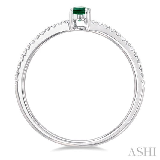 Vendor:Ashi1/10 ctw Petite 5X3MM Oval Cut Emerald and Round Cut Diamond Precious Fashion Ring in 10K White Gold