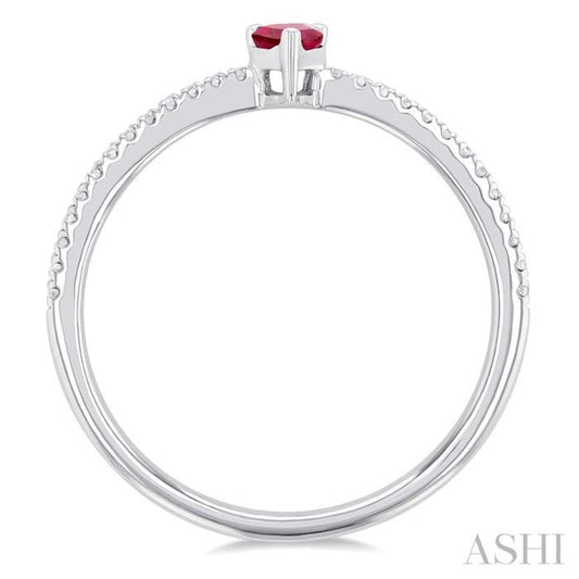 1/10 ctw Petite 5x3 MM Pear Cut Ruby and Round Cut Diamond Precious Fashion Ring in 10K White Gold