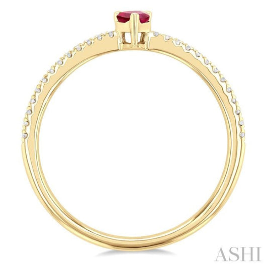 1/10 ctw Petite 5x3 MM Pear Cut Ruby and Round Cut Diamond Precious Fashion Ring in 10K Yellow Gold