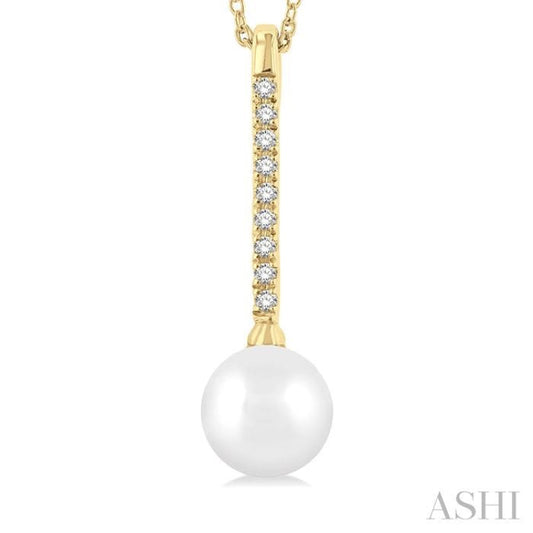 1/10 ctw Petite 7X7MM Cultured Pearl and Round Cut Diamond Fashion Pendant With Chain in 10K Yellow Gold