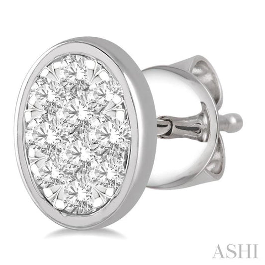 1/3 ctw Oval Shape Lovebright Round Cut Diamond Bezel Stud Earring in 14K White Gold