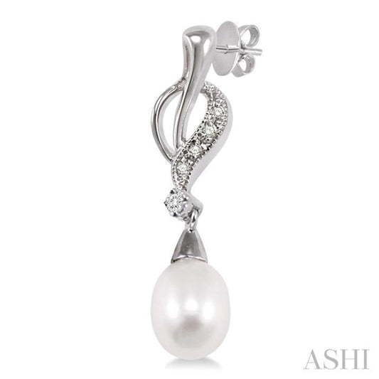 8x6MM Drop Shape Cultured Pearls and 1/10 Ctw Round Cut Diamond Drop Earrings in 14K White Gold