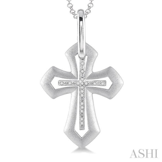 1/20 Ctw Single Cut Diamond Cross Pendant in Sterling Silver with Chain