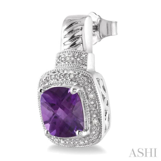 8x8 mm Cushion Cut Amethyst and 1/20 ctw Single Cut Diamond Earrings in Sterling Silver