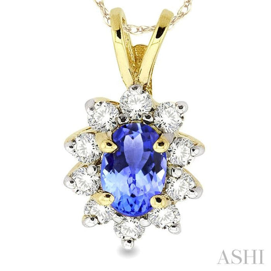 6x4MM Oval Cut Tanzanite and 1/4 Ctw Round Cut Diamond Pendant in 14K Yellow Gold with Chain