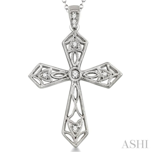 1/20 Ctw Single Cut Diamond Cross Pendant in Sterling Silver with Chain