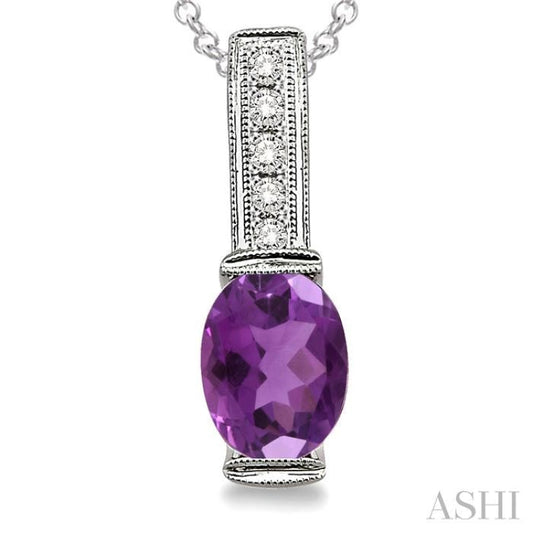 8x6 MM Oval Cut Amethyst and 1/50 Ctw Single Cut Diamond Pendant in Sterling Silver with Chain