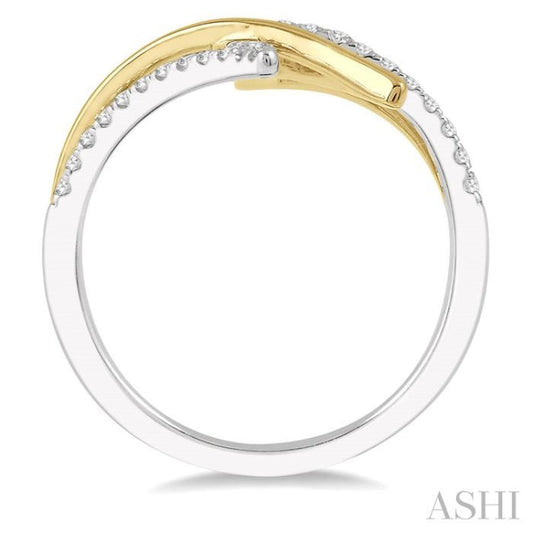 1/6 Ctw Two Tone Interlocked Zig-Zag Round Cut Diamond Fashion Ring in 10K White and Yellow Gold